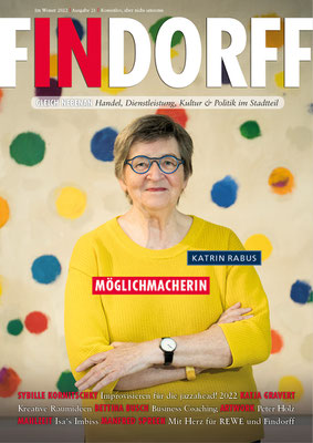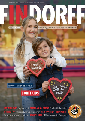 Das Magazin FINDORFF GLEICH NEBENAN bietet Unternehmen, Institutionen, Initiativen, Einzelhändlern und Gastronomen die Möglichkeit mit »ihrer Anzeige« in einem redaktionell professionellen und werblich attraktiven Umfeld dabei zu sein.