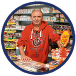 Tabak, alkoholfreie Getränke, Alkohol und Snacks gehen gut. »Red Bull« wird gern gekauft. Viele spielen hier Lotto. Ich gehe nach der Kundschaft und verkaufe, was die gerne hätten. Was